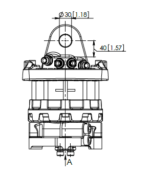 Informazioni tecniche: Rotazione Illimitato Carico assiale massimo statico   +100 -80 kN (+22485 -17985 lbf) Carico assiale massimo dinamico +50 -40 kN (+11242 -8992 lbf) Coppia  2500 Nm (1844 libbre-piede) Flusso d'olio raccomandato  25 litri/min Peso  64 chili Collegamento superiore L  80,5 mm (3,17 pollici) Collegamento superiore D  35 mm (1,38 pollici) Assale inferiore d e foro D Flangia inferiore dx pos e foro bullone D